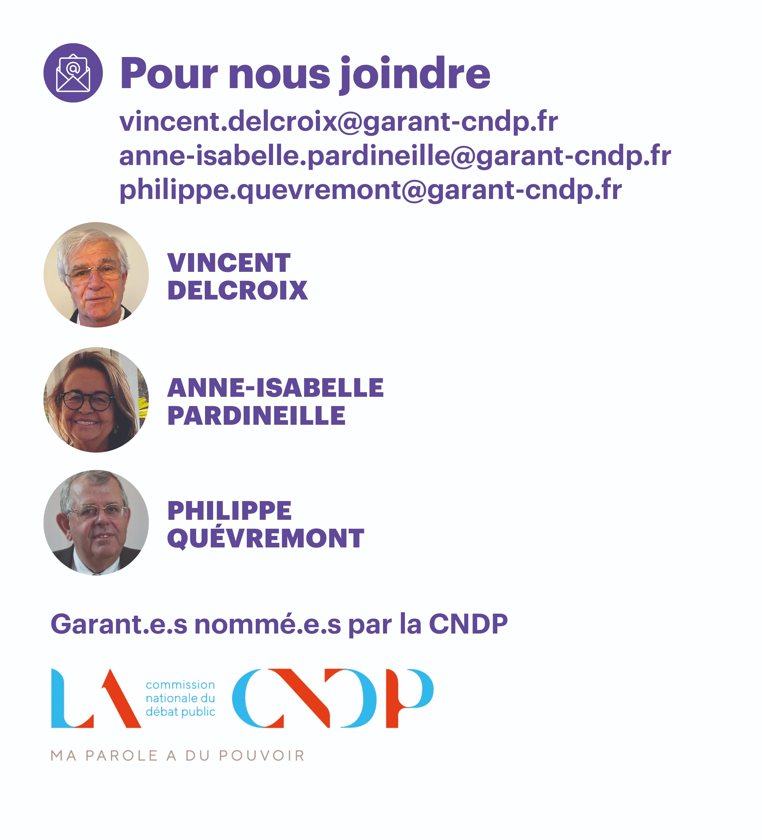 Dans ce cadre, la concertation préalable phase 2 LNMP a été décidée en application de l’article L. 121-12 du Code de l’environnement par la Commission Nationale du Débat Public (CNDP). Trois garants ont été désignés pour veiller à la bonne information et à la participation du public :